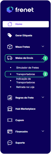Saiba como ativar a transportadora Ideale na Frenet Neste artigo, você vai conhecer o passo a passo para a ativação da transportadora Ideale no sistema Frenet. A configuração é via webservice e com alguns cliques, a sua loja virtual já terá acesso aos serviços de transporte.IMPORTANTE: para ativar qualquer transportadora na Frenet utilizando o seu contrato, é necessário que você tenha assinado um plano Frenet com mensalidade.Siga o passo a passo abaixo: No site da Frenet, clique em “ACESSAR MEU PAINEL” e faça seu login; Após o login, clique na opção “MEIOS DE ENVIO” e “TRANSPORTADORAS”, localizados no menu lateral, à esquerda da página; Na seção “Meios de envio disponíveis para cotação na sua loja via seu contrato”, escreva “Ideale” no campo de busca e pressione a tecla “ENTER” para efetuar a pesquisa. Em seguida, clique no logo da Ideale; Após acessar a página, clique no ícone para editar o serviço que deseja ativar. Preencha as informações solicitadas: Na aba DADOS GERAIS: HABILITAR SERVIÇO: marque esse campo para habilitar o serviço em sua conta; NOME PERSONALIZADO DO SERVIÇO DE ENTREGA (opcional): neste campo, você pode personalizar um nome de fácil identificação para o serviço; Atenção: alterar o nome do serviço pode ter efeito sobre as informações que você terá disponível no pedido em sua plataforma. Sugerimos que avalie os impactos em seus processo e outras integrações. CUBAGEM PADRÃO: esse campo é opcional. Preencha caso tenha uma diferenciação de cubagem de seus produtos. Através deste valor, multiplicamos o volume dos seus produtos, influenciando diretamente nas cotações de frete; LIMITE DE ISENÇÃO DE CUBAGEM: esse campo é opcional. Preencha caso tenha isenção de cubagem negociada com a transportadora; Na aba DADOS DE CONTRATO: CHAVE DE ACESSO: insira a chave fornecida pela transportadora; Após, clique em “SALVAR”; Pronto! Após seguir essas etapas, a transportadora Ideale estará ativada na sua conta Frenet. Se precisar de ajuda, saiba como contactar o Suporte Frenet, neste link. Atualizado em 12 de novembro de 2025 Palavras chaves:contrato próprioIdealeIntegração de Tabelasintegraçõestransportadoras Este artigo foi útil? Yes No Artigos Relacionados Saiba como integrar a plataforma Vale da Web com o sistema Frenet Saiba como integrar a Frenet com a plataforma Lojcomm TUTORIAL – Integração com ERP Solares Cloud TUTORIAL – Integração com a plataforma Moovin TUTORIAL – Integração com a plataforma eCShop Saiba como integrar a Frenet com a plataforma imprima STORE