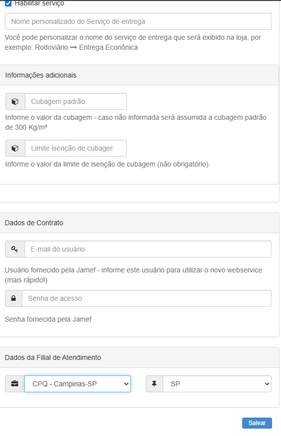 Saiba como ativar a transportadora Jamef na Frenet