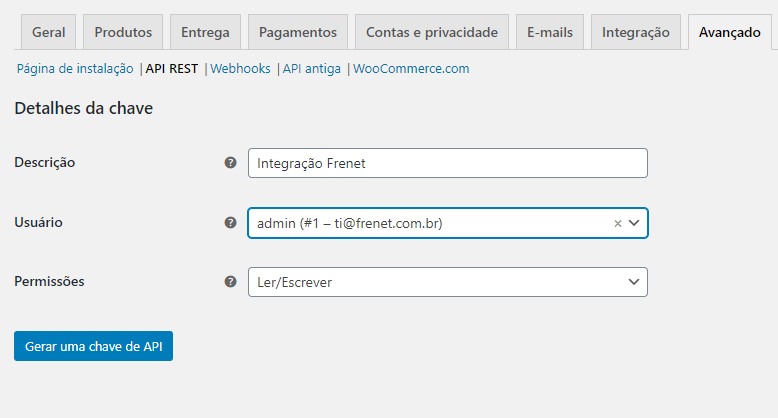2º Passo: Configuração para sincronização dos pedidos entre a Frenet e o WooCommerce