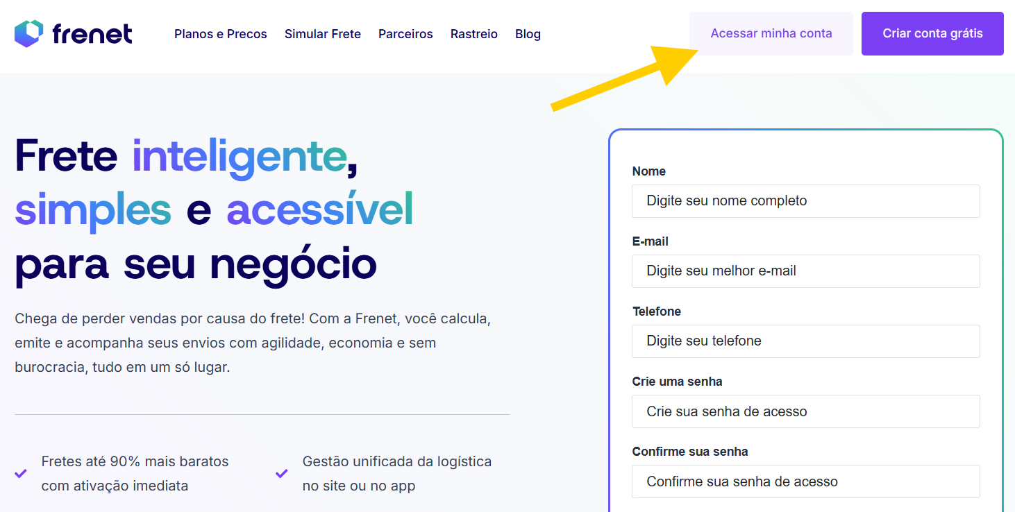 1. No site da Frenet, clique em “ACESSAR MEU PAINEL” e faça seu login;