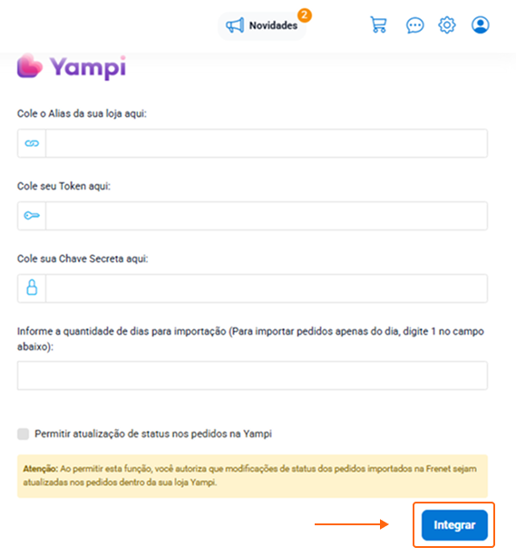 4. Saiba como integrar os seus pedidos da Yampi na Frenet