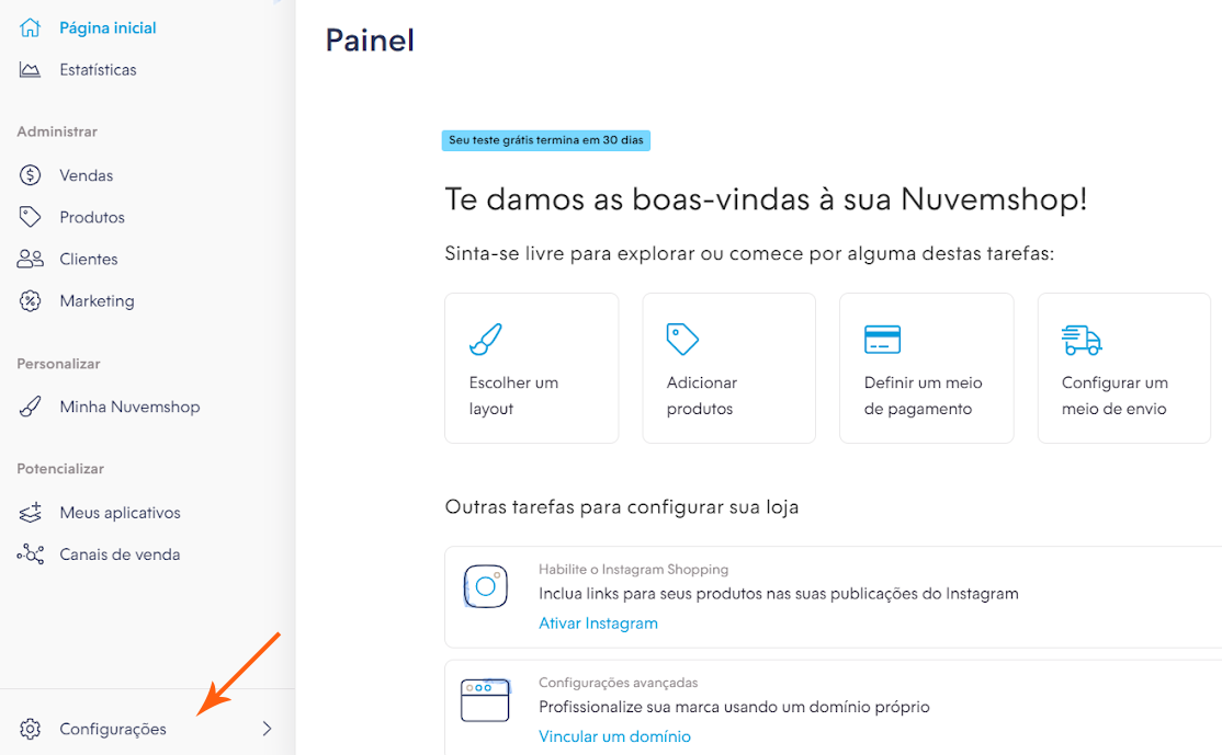 • caso a tela fique branca e nenhuma mensagem apareça, verifique se a integração foi realizada acessando sua conta Nuvemshop.